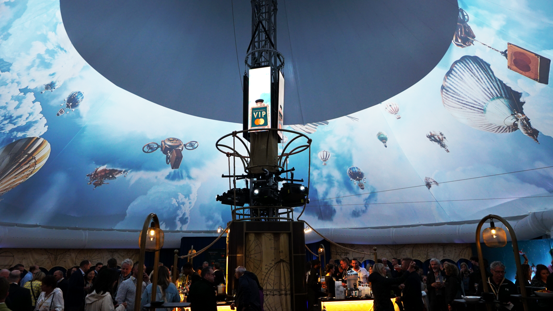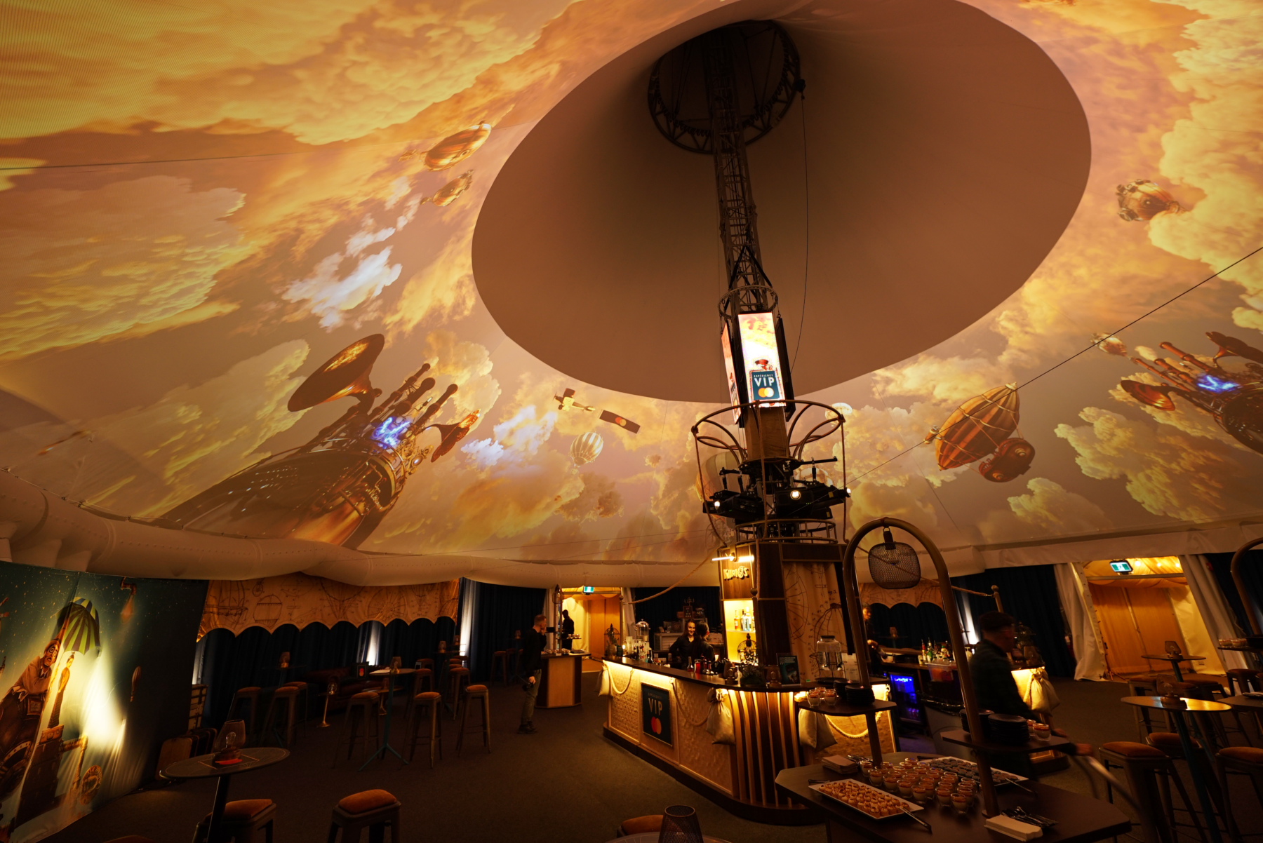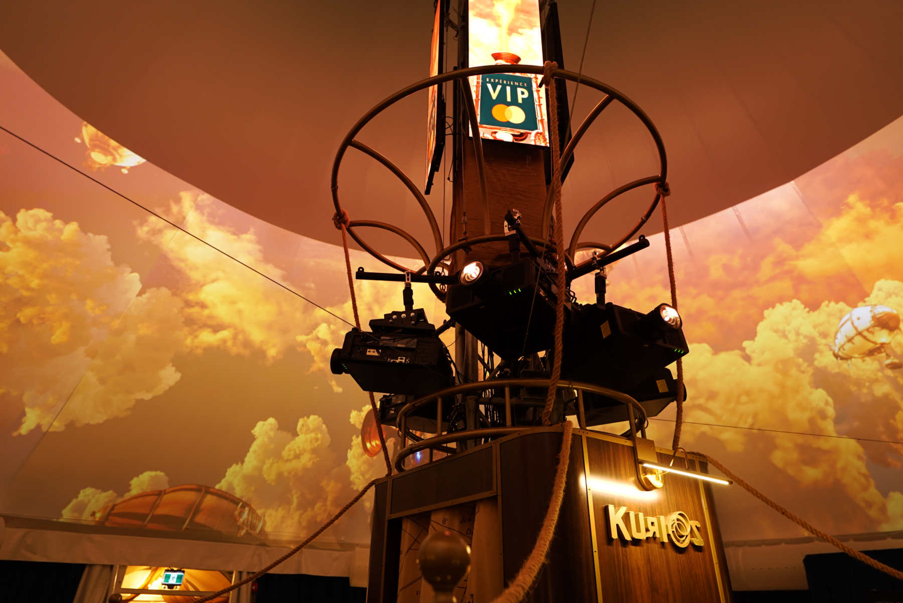 We set about creating an environment that propelled visitors into a hot-air balloon, an invention from the Mongolfier brothers in 1782 and later canonized in Jules Verne’s “Five Weeks in a Balloon” in 1863. By drawing inspiration from this era, we were able to produce steampunk imagery that was appreciated by clients and elevated the overall guest experience.