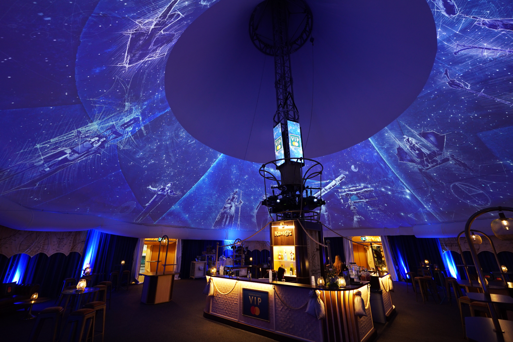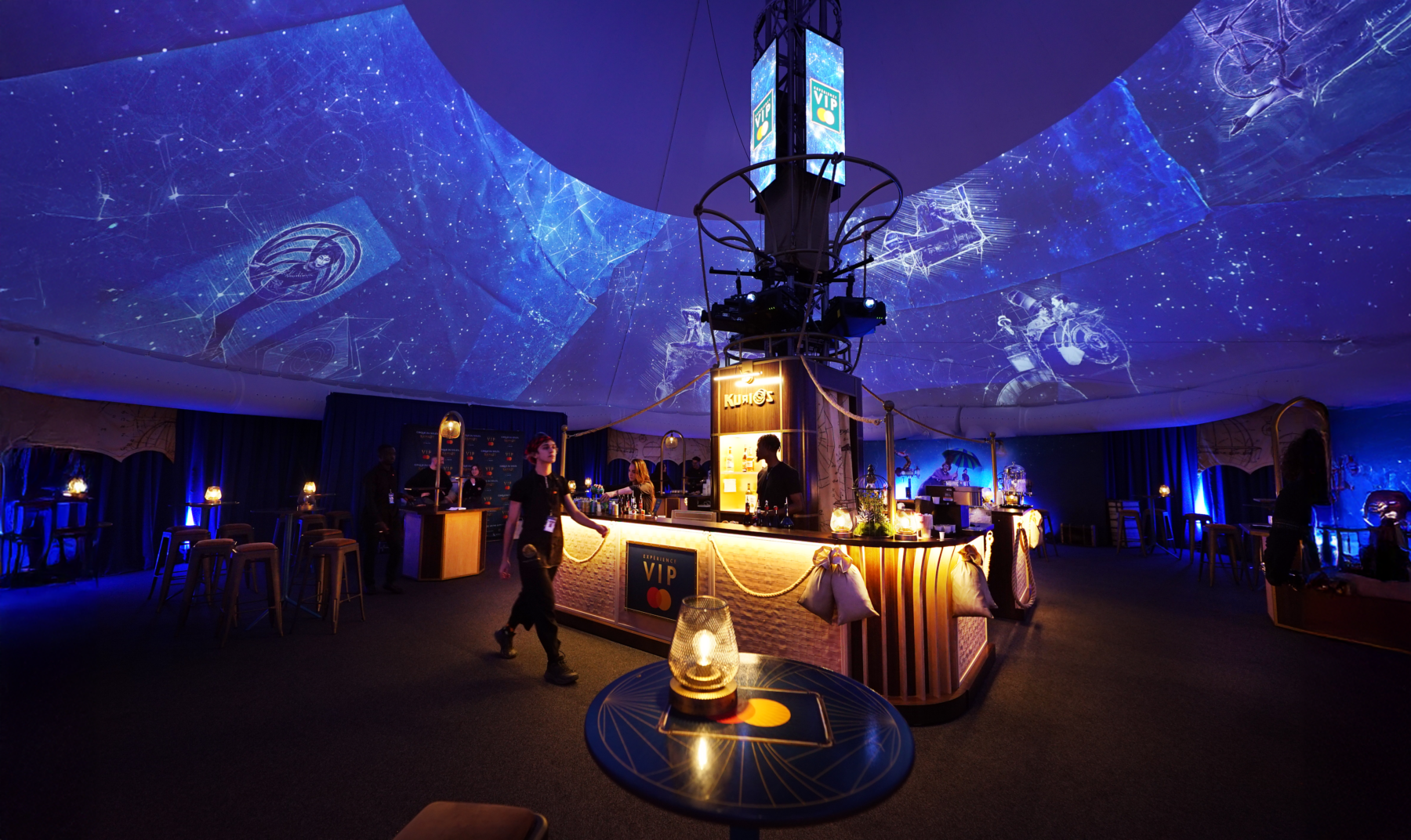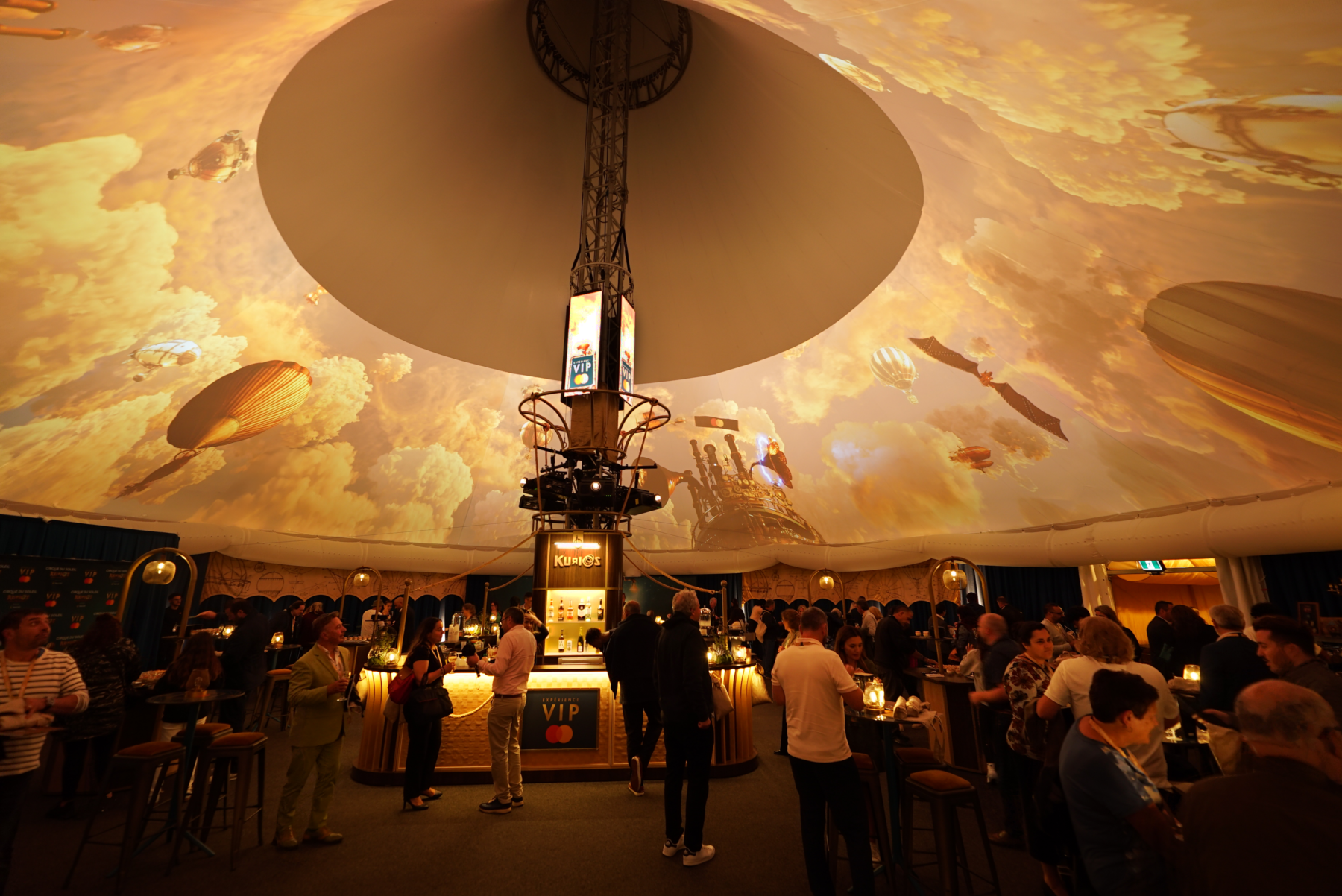 By shaping the visuals of the VIP tent, we played a crucial role in inviting visitors into this charming world by setting the stage for the acrobatics to come. The space was designed to host guests before and after the show and during the intermission. It’s a soft entrance into the golden age of the steam engine.