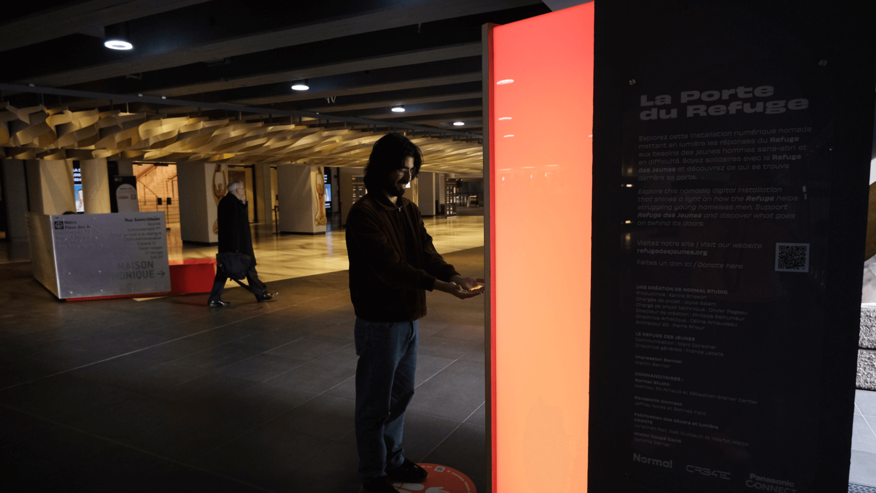 To mark its 35th anniversary, the Refuge wanted to step outside its walls to connect with the public. The idea: a traveling digital artwork symbolizing its founding gesture—opening a door. An accessible urban installation, designed to raise awareness and encourage people to reach out.