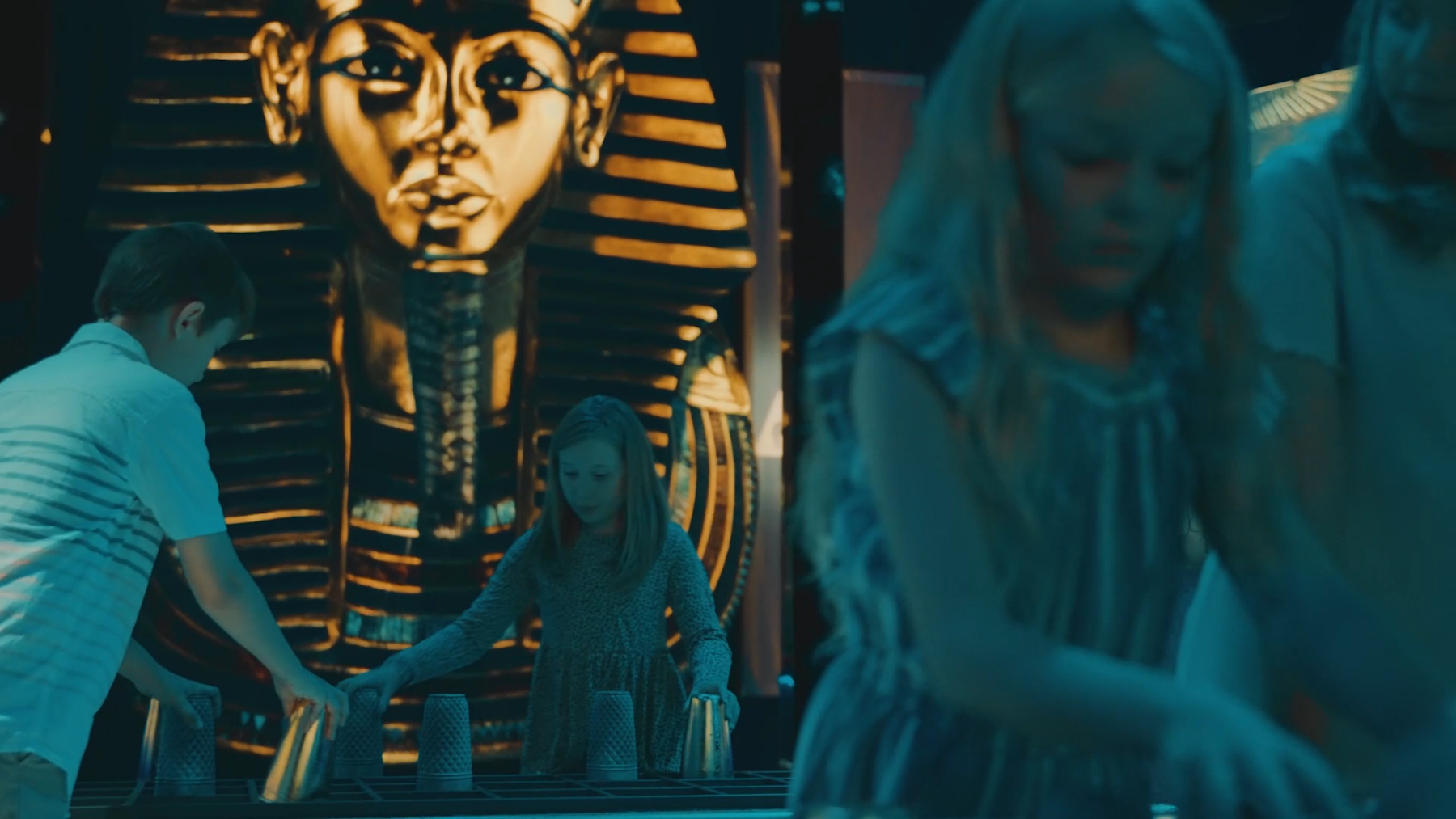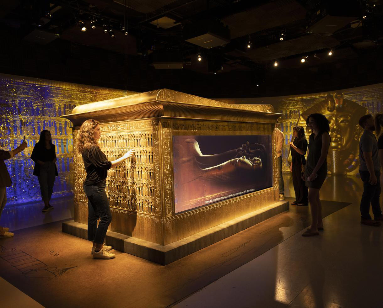 Soulignant le 100e anniversaire de la découverte de cette tombe légendaire, cette troisième expérience Beyond s’inscrivant dans la lignée de Beyond Van Gogh et Beyond Monet est la proposition la plus étoffée de la série sur le plan narratif. Puisque les artéfacts sont conservés en Égypte et qu’ils ne pouvaient donc pas être directement intégrés au projet, il a fallu redoubler d’imagination et de savoir-faire pour créer une exposition historique à la fois précise et interactive à partir d’archives, de technologies de pointe, d’une approche scénographique soignée et d’une bonne dose d’ingéniosité.