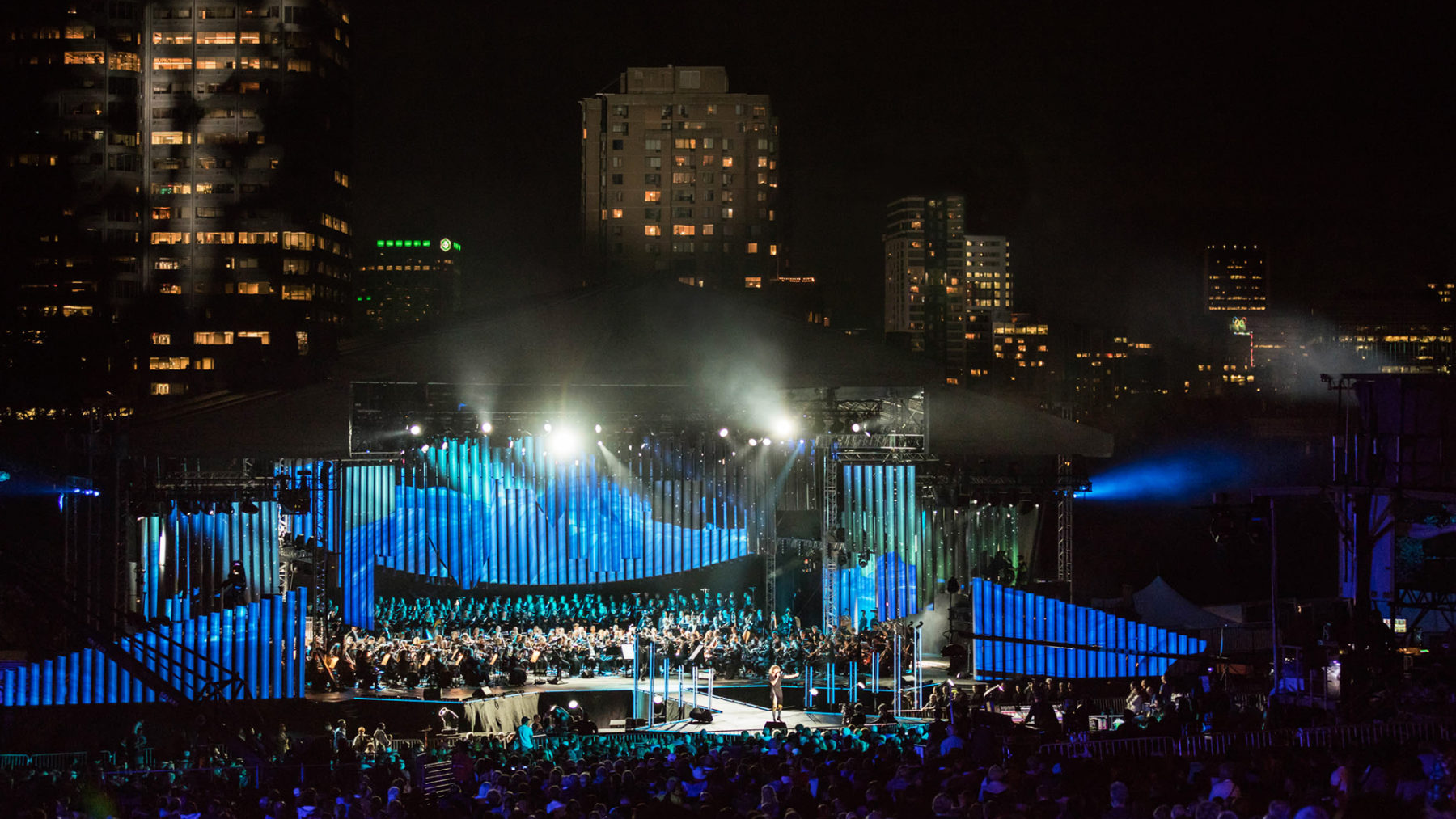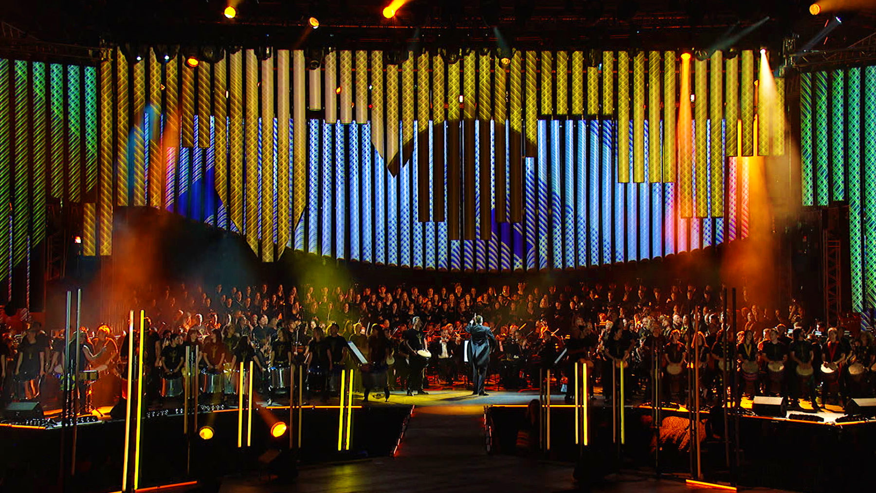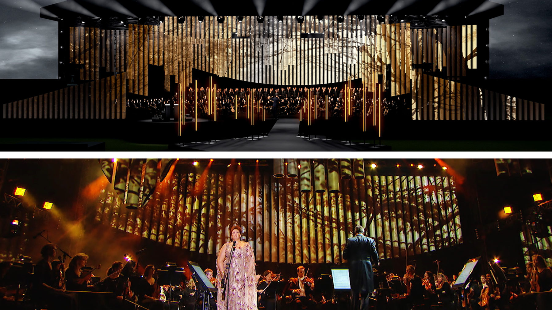 GSI Musique, pour le compte de la Société des célébrations du 375e anniversaire de Montréal, a mandaté Normal Studio pour concevoir les visuels des 25 chansons du spectacle et la scénographie, inspirée à la fois par la ligne d’horizon de Montréal, du Mont-Royal et par un grand orgue, souhaité comme clin d’œil aux grandes maisons symphoniques.